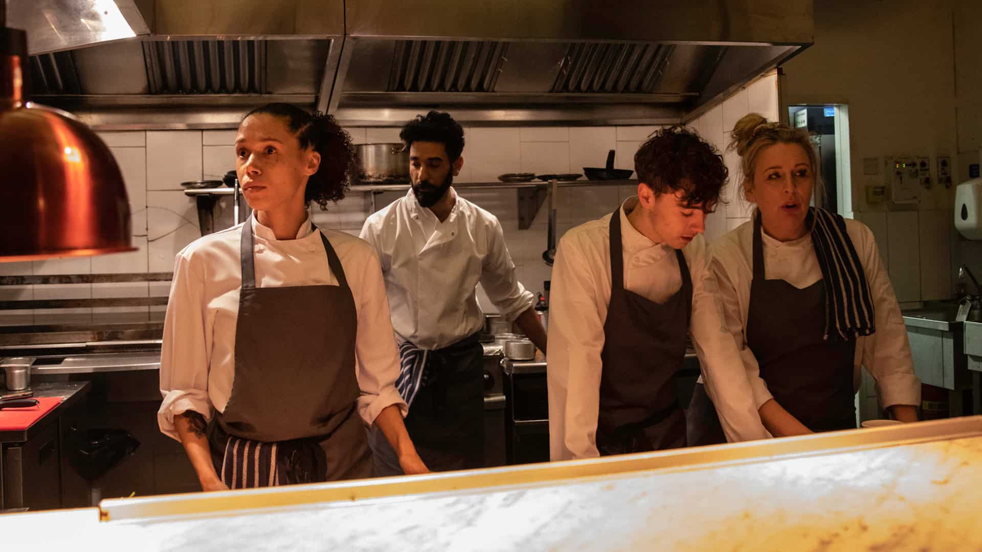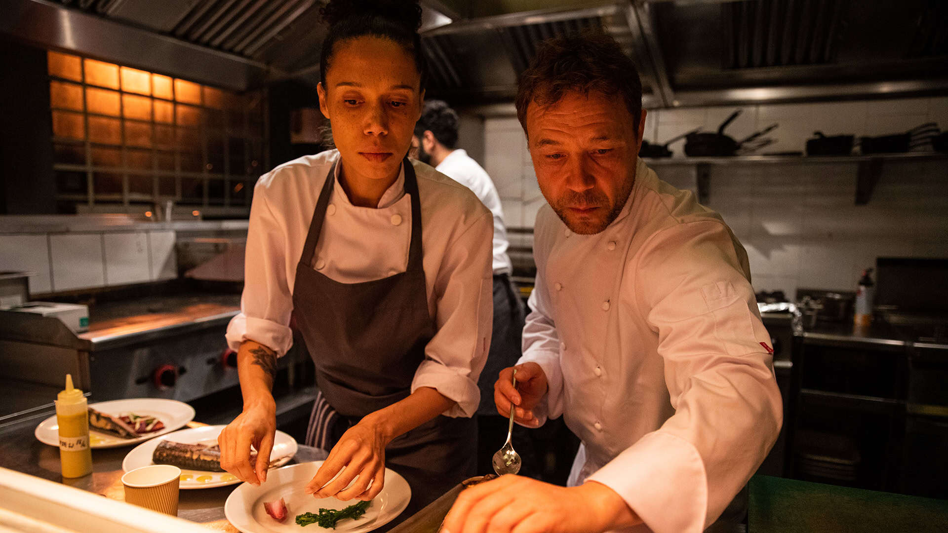 It’s Christmas Eve, the busiest night of the year at one of the hottest restaurants in London. Charismatic and commanding head chef Andy Jones balances along a knife’s edge as multiple personal and professional crises threaten to destroy everything he’s worked for. A surprise visit from a health and safety inspector sets the staff on edge as the overbooked hot spot fills with guests. Jones tries his best to diffuse tensions between management and crew while catering to the ridiculous demands of customers.